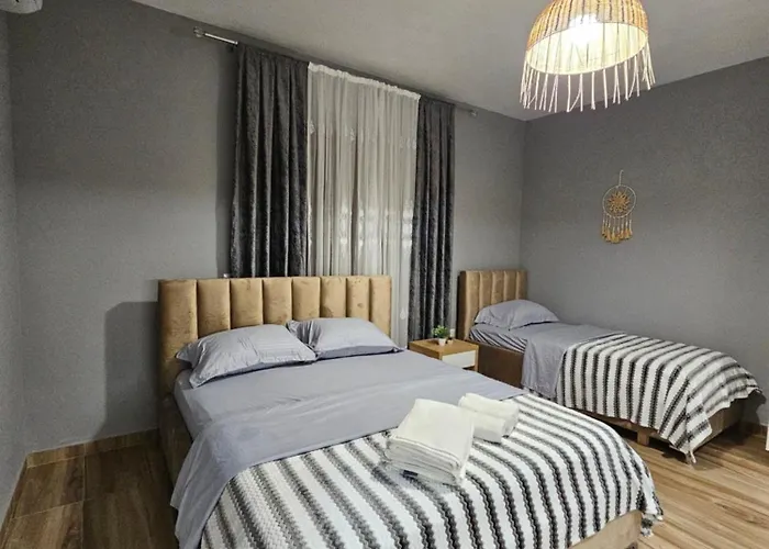 Star Rooms New dairesi, Dıraç Arkeoloji Müzesi'a 4 km ve Vollga Promenade'a 3 km uzaklıkta yer almaktadır. Pizzacı Piceri Restorant Queen tesisten 5 dakikalık yürüyüş mesafesinde olup misafirlerine Europese yemeklerini sunar. Dıraç Fatih Camii de kısa bir sürüş mesafesindedir.
